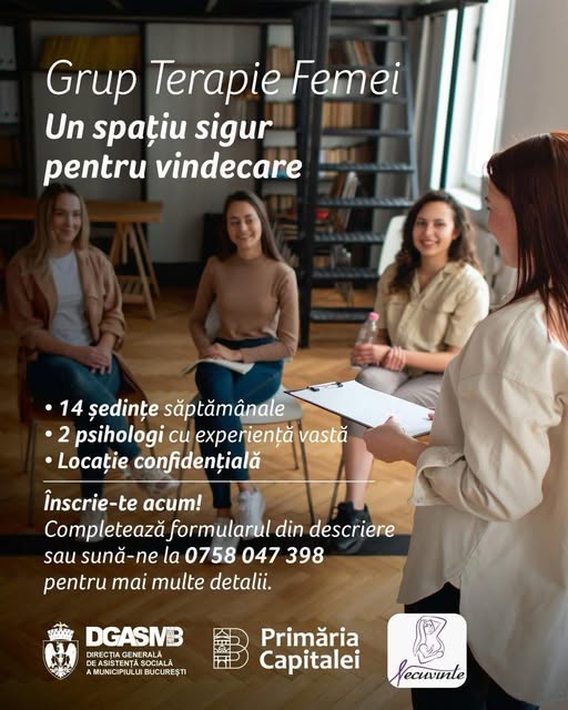 Primăria Municipiului București, prin Direcția Generală de Asistență Socială (DGASMB), în parteneriat cu Asociația Necuvinte, lansează un program de terapie de grup destinat femeilor care au fost victime ale violenței domestice, agresiunii sexuale sau discriminării de gen.