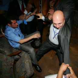 Şedinţă de Consiliu Local finalizată... la spital, în localitatea dâmboviţeană Tărtăşeşti. Cearta dintre aleşii comunei a plecat de la un proiect de hotărâre cu care unii dintre membrii Consiliului Local nu au fost de acord. Edilul şef s-a enervat, iar de aici până la injurii şi bătaie nu a fost decât un pas. Primarul localităţii Tărtăşeşti este, de altfel, acum acuzat că a bătut trei dintre membrii Consiliului Local şi este cercetat de poliţie. Dar, iată cum s-au derulat evenimentele, potrivit unei anchete desfăşurate de oamenii legii: „Vineri, 9 octombrie, în jurul orei 15.10, lucrătorii Poliţiei Comunale din localitate au fost sesizaţi de către E. Paula, ales local al comunei Tărtăşeşti, cu privire la faptul că, în urma unei întruniri a Consiliului Local, a izbucnit un scandal, iar primarul localităţii s-a bătut cu mai mulţi consilieri. La faţa locului s-au deplasat imediat echipajele de poliţie care au constatat că, la încheierea şedinţei de consiliu local, între primar şi unul dintre consilierii locali a izbucnit o ceartă, consilierul fiind lovit cu pumnul de către primar, după care acesta din urmă a plecat. După aproximativ 5 minute, primarul comunei s-a întors cu alte 4 persoane care i-au lovit pe consilierii aflaţi în curtea liceului, respectiv pe P. Doru, D. Vasile şi D. Nicolae. Toţi cei trei consilieri au depus plângere pentru săvârşirea infracţiunii de lovire sau alte violenţe, urmând ca în baza certificatelor medico-legale de vor fi depuse de aceştia, procurorul desemnat să stabilească încadrarea juridică a faptei“. Nicoleta Andrei