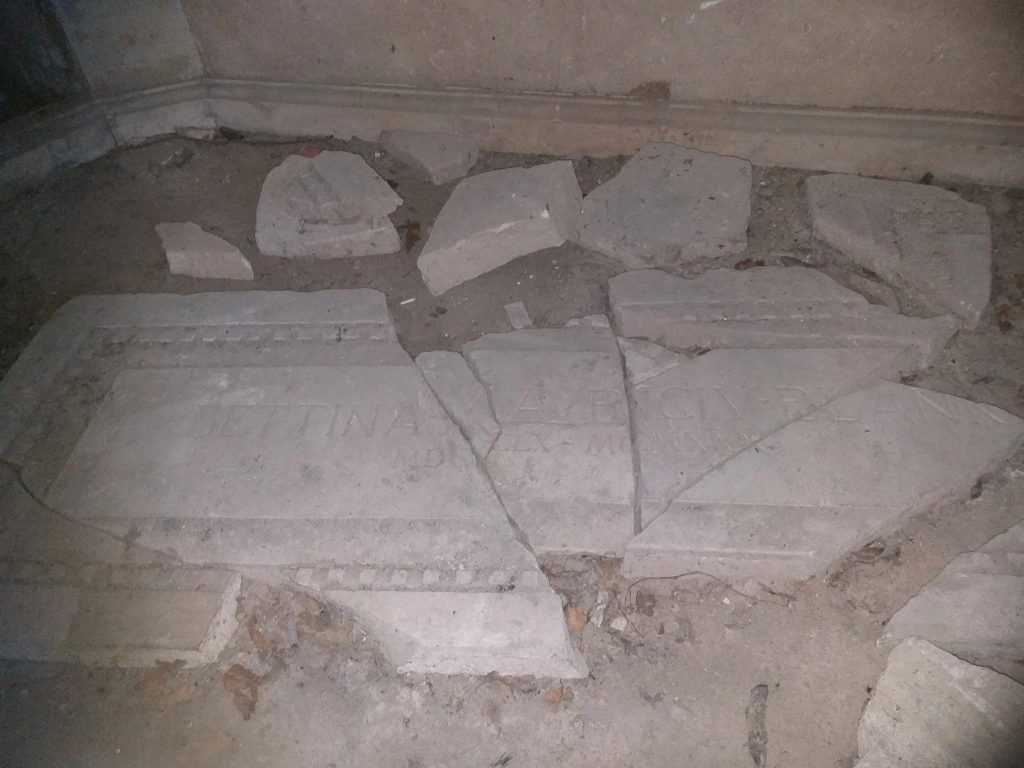 Sunt cinci morminte. Capacul din piatră (marmură?) al unuia dintre ele a fost smuls și spart. E aruncat la picioarele noastre. Deslușesc numele: Bettina… Cine-o fi Bettina?